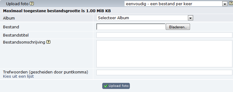 On the upload file screen, choose an album from the "Album" dropdown